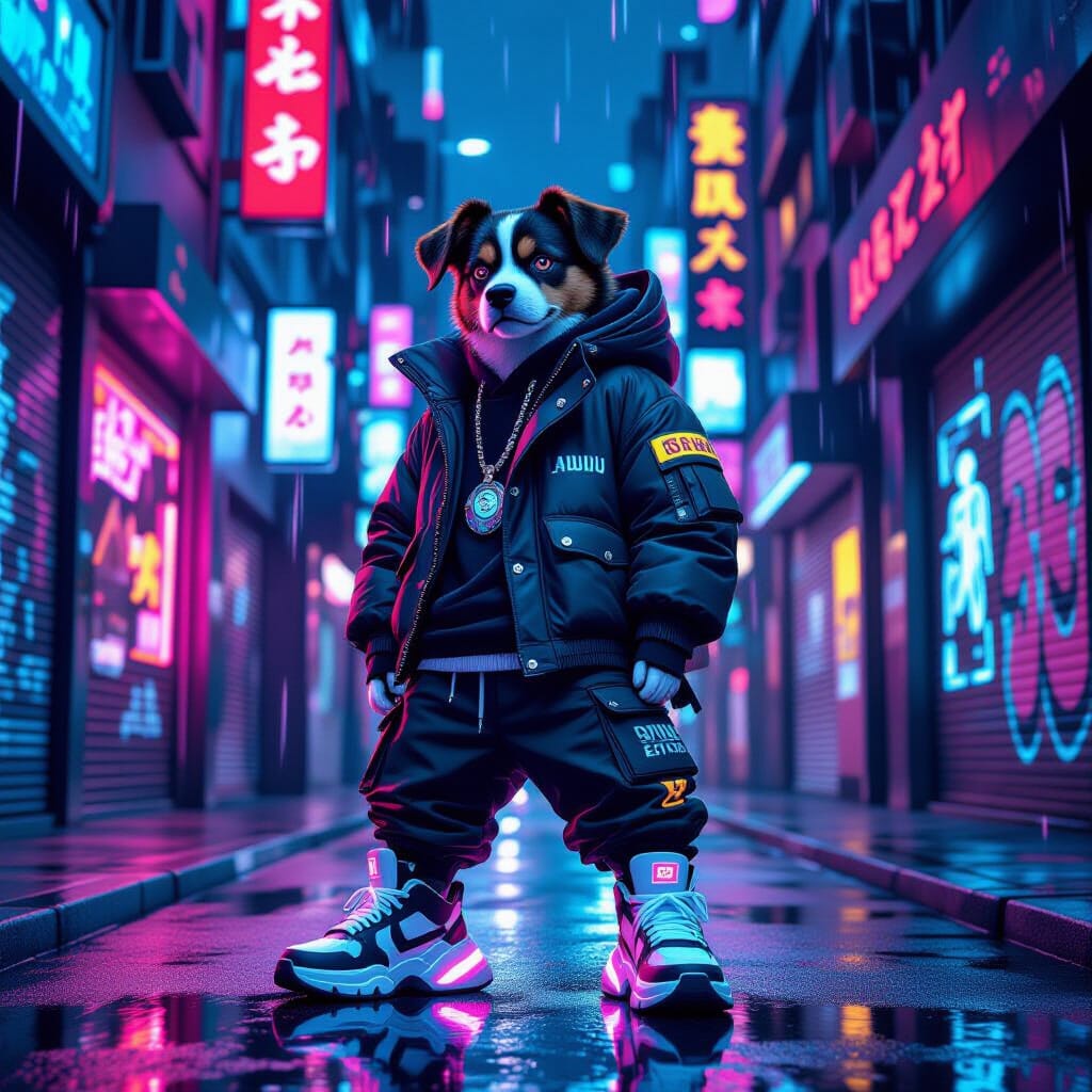 H0UND moves like smoke — muscle under fur, eyes glinting amber and intelligence.
